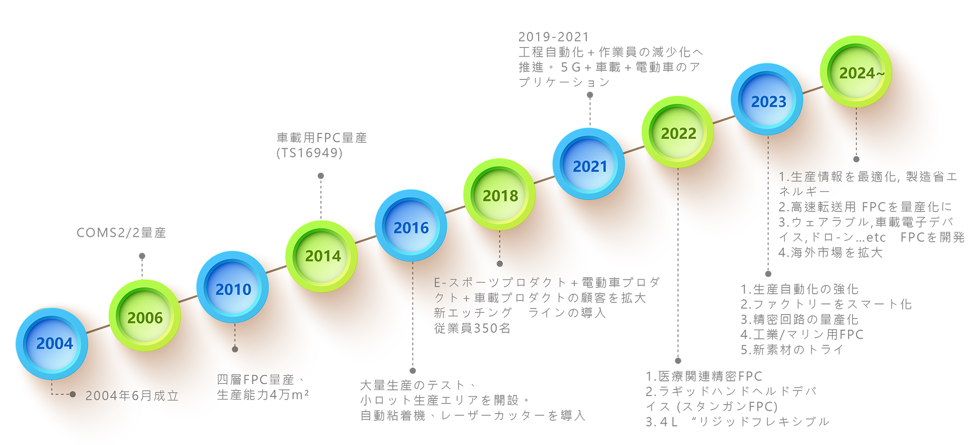 電子製品の発展に伴い、FPCに求められる技術要求も高まっています。FPC(Flexible Printed Circuit、フレキシブルプリント回路基板)は現在、さまざまな電子製品で活用されています。 軽量、薄肉、コンパクトに対応するFPCの市場ニーズは、現代の高密度電子製品の進化の主要な推進力になっています。J&T Flex Technologyは、高周波、マイクロ回路、多層、車両使用、FPCアセンブリなどのアプリケーションにおいて、開発・設計からサンプル生産、小規模生産または大量出荷まで、最適な選択肢となります。